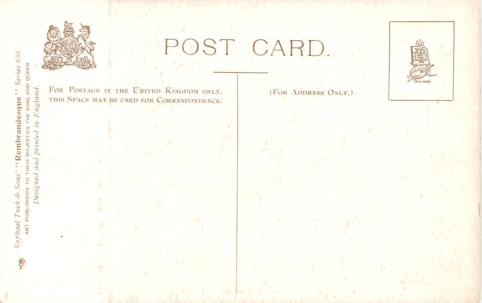 u/b, divided back, DESIGNED AND PRINTED IN ENGLAND, listed in 1904 POSTCARD Catalogue