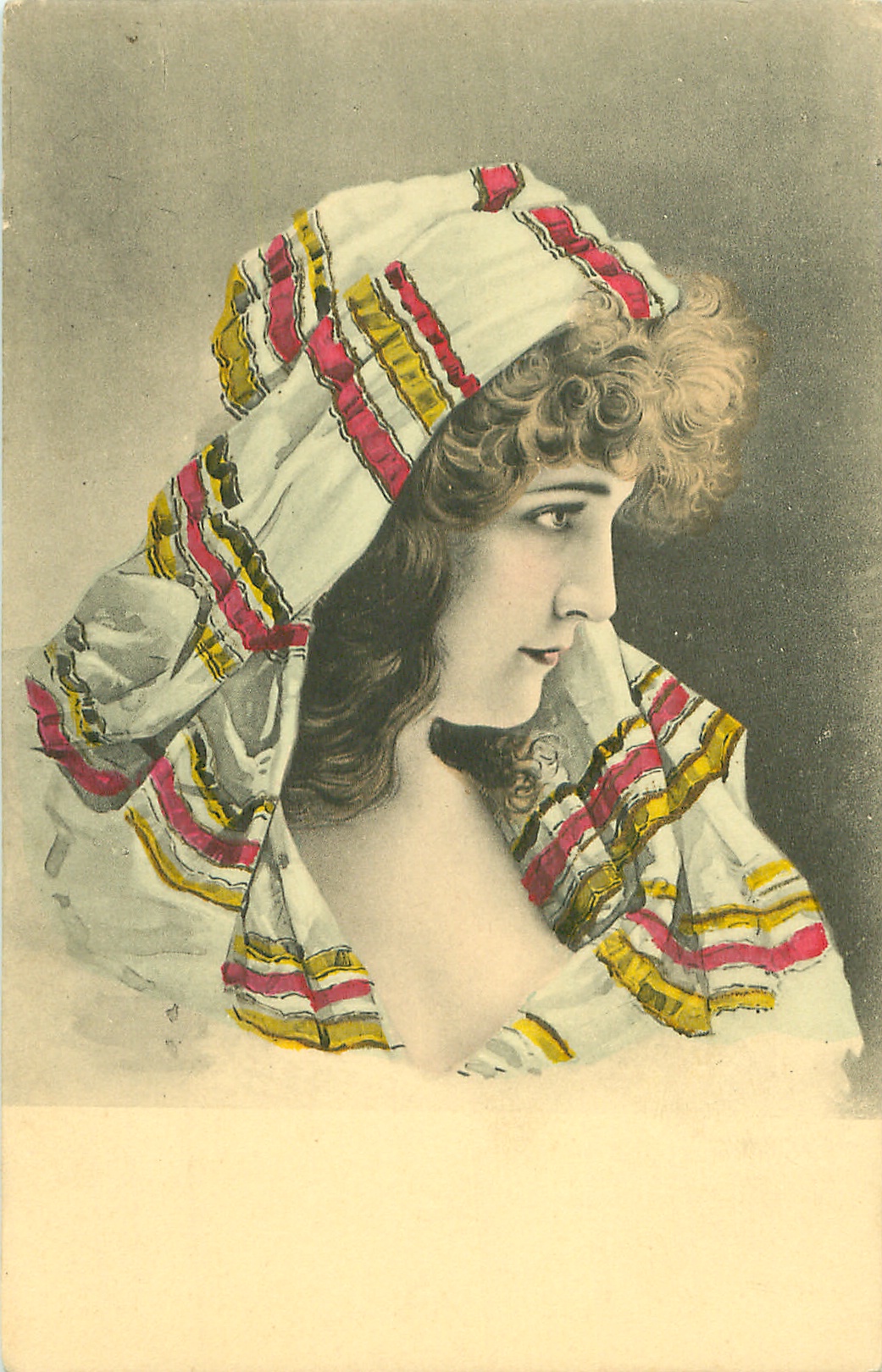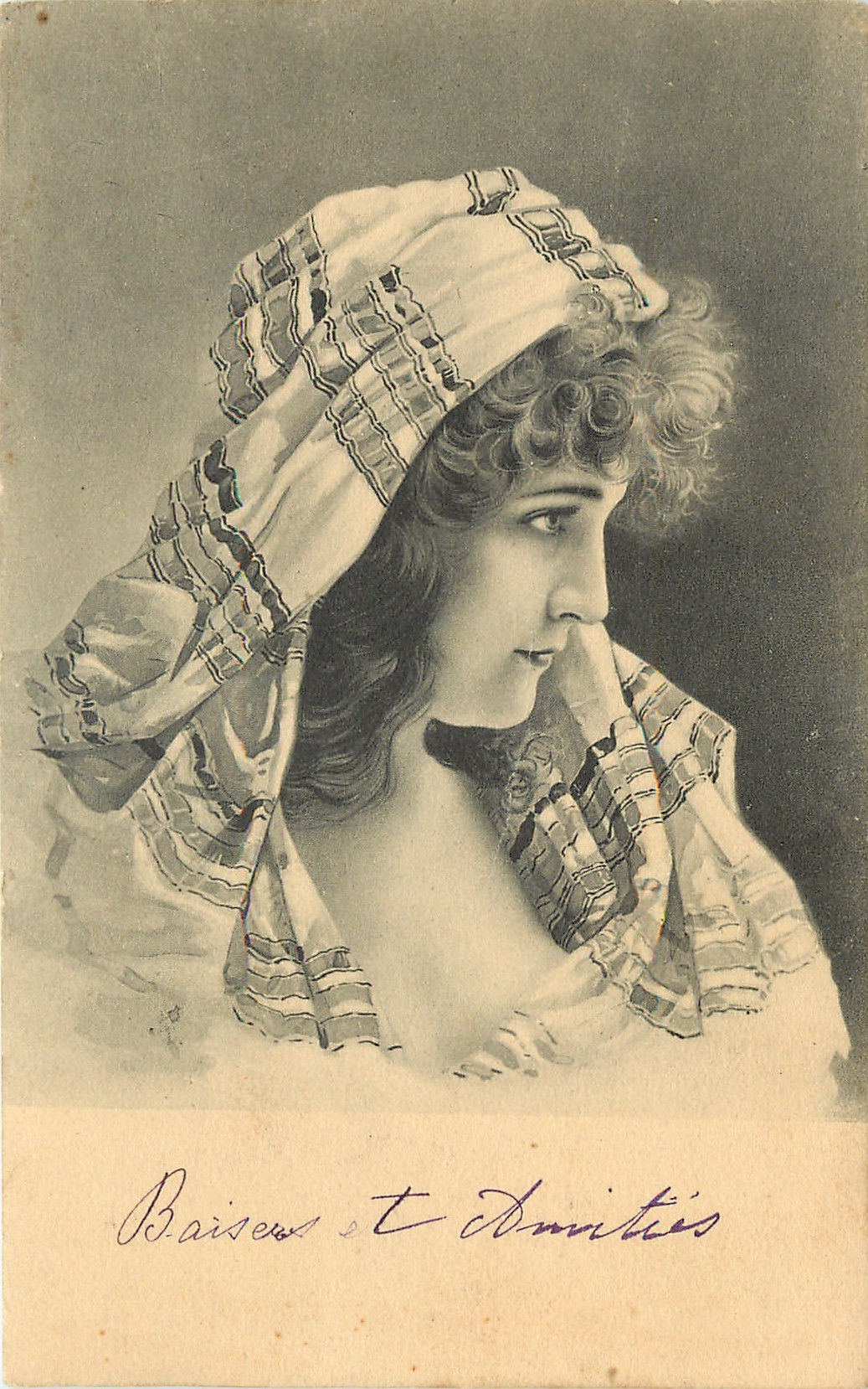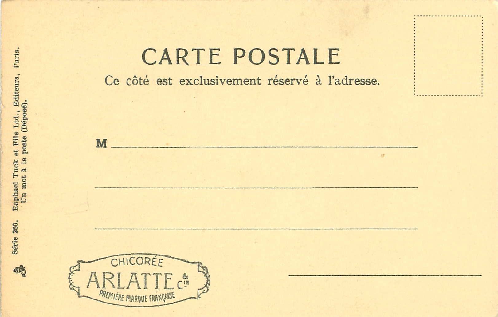 u/b, black & white, often hand-coloured, grey background, UN MOT A LA POSTE, (DEPOSE), come opt. in grey on back CHICOREE ARLATTE & CIE. PREMIERE MARQUE FRANCAISE