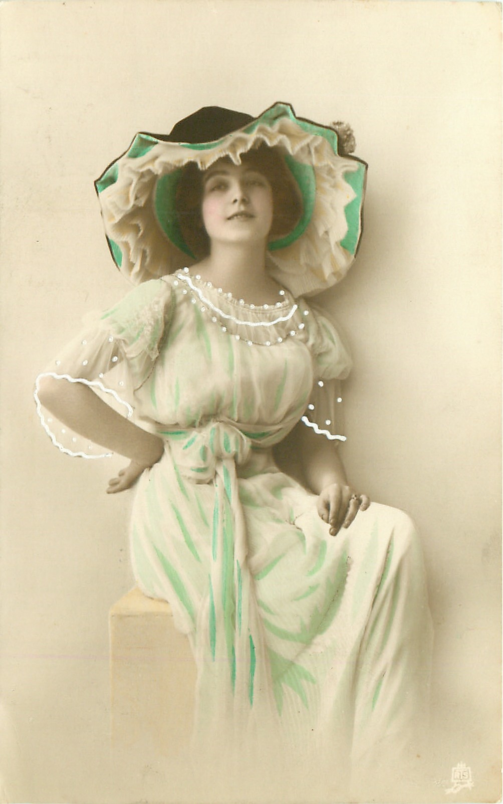 woman in green, hand on hip