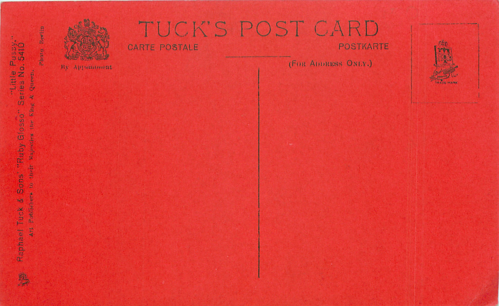 glamorous lady with head on pillow cuddles cat which is looking to left of card