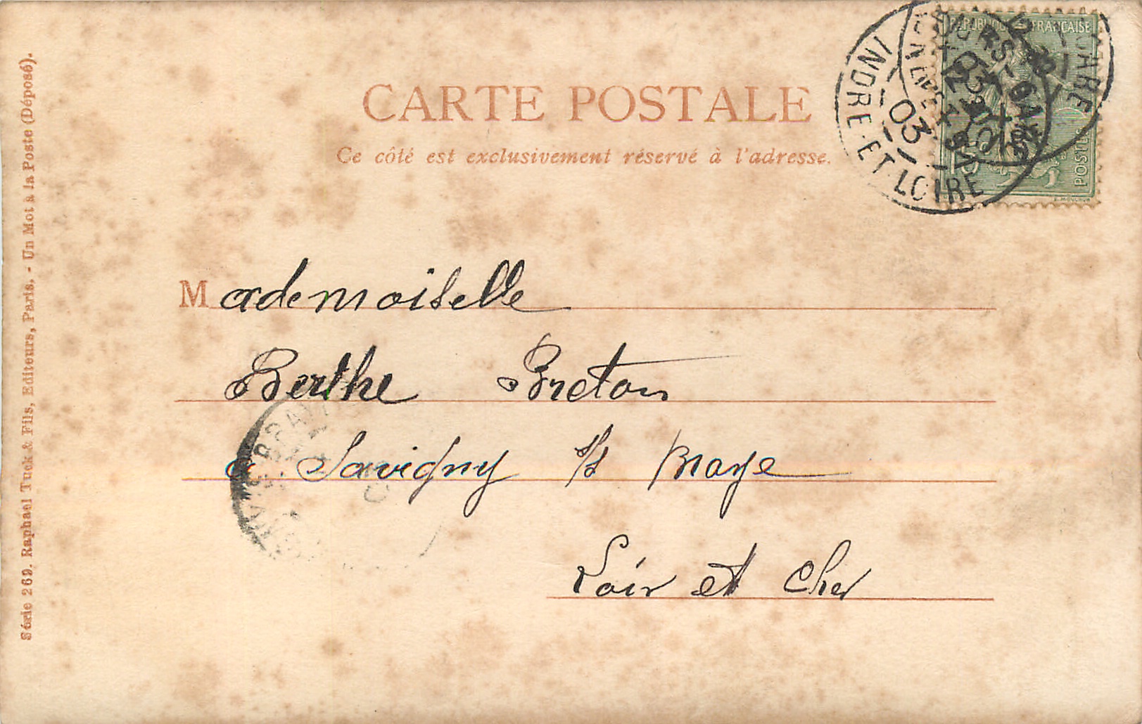 u/b, come hand-coloured, photographic, UN MOT A LA POSTE, (DEPOSE) printing on front in black or red