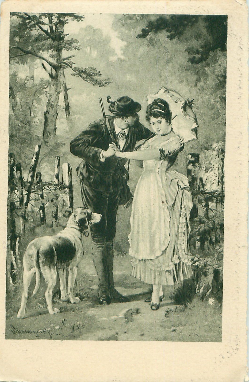 u/b, black & white, UN MOT A LA POSTE, (DEPOSE), same images 2551, Lovers in old-style dress, deckle edged