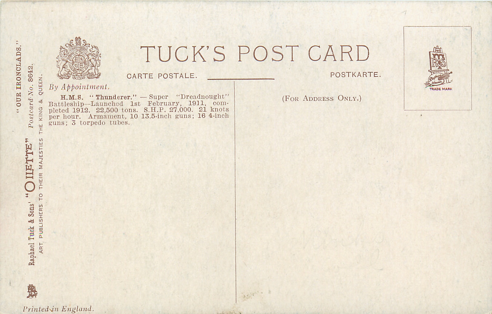 OILETTE, PRINTED IN ENGLAND, same images & card titles OUR NAVY SERIES V 8642