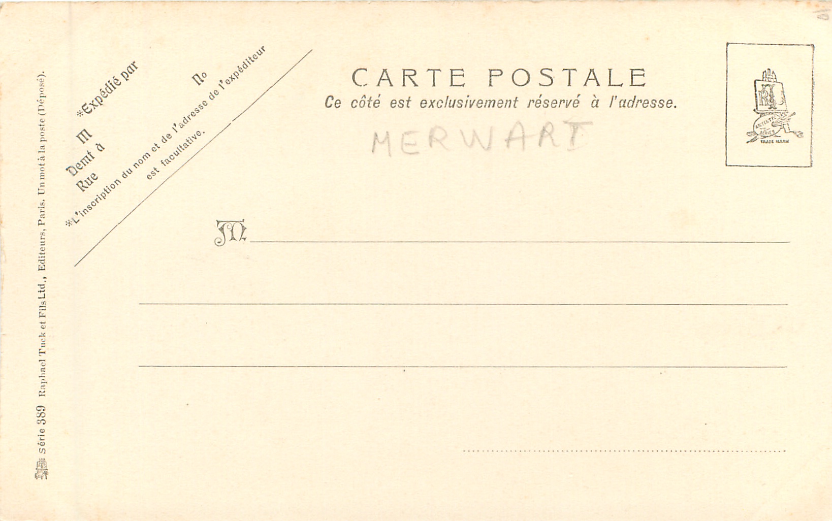 u/b, grey/black, come hand-coloured, RAPHAEL TUCK & FILS LTD., EDITEURS, PARIS. UN MOT A LA POSTE, (DEPOSE)