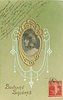 UN MOT A LA POSTE, (DEPOSE), International back, thick cards, embossed gilt nouveau borders of insets, nouveau designs on card round inset