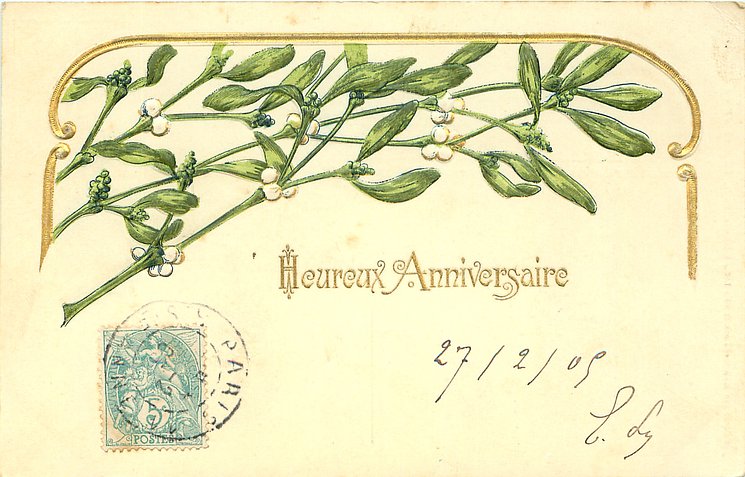 HEUREUX ANNIVERSAIRE mistletoe under gilt design