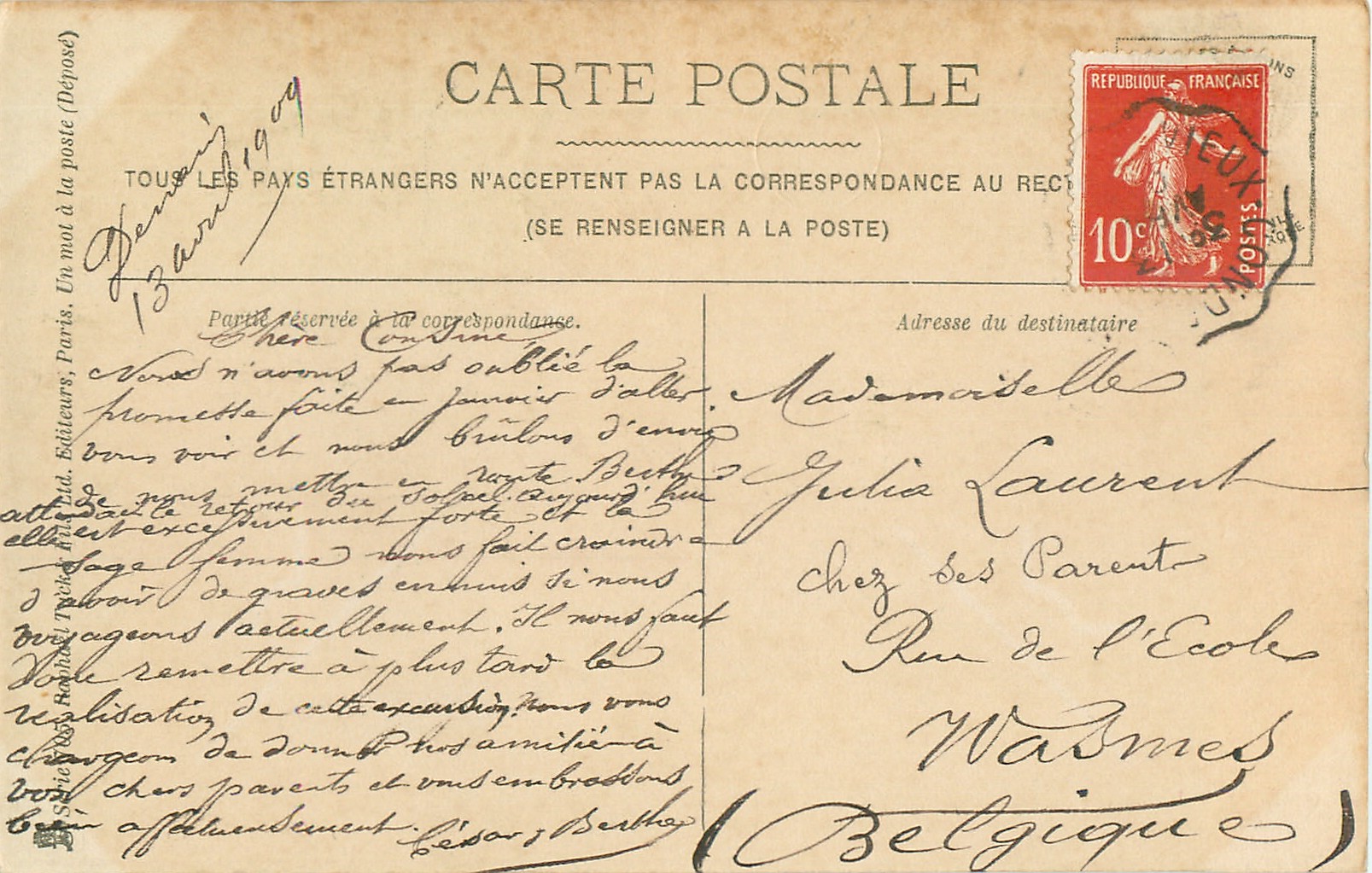 photographic, hand-coloured, UN MOT A LA POSTE, (DEPOSE), photo H. MANUEL (one card signed)