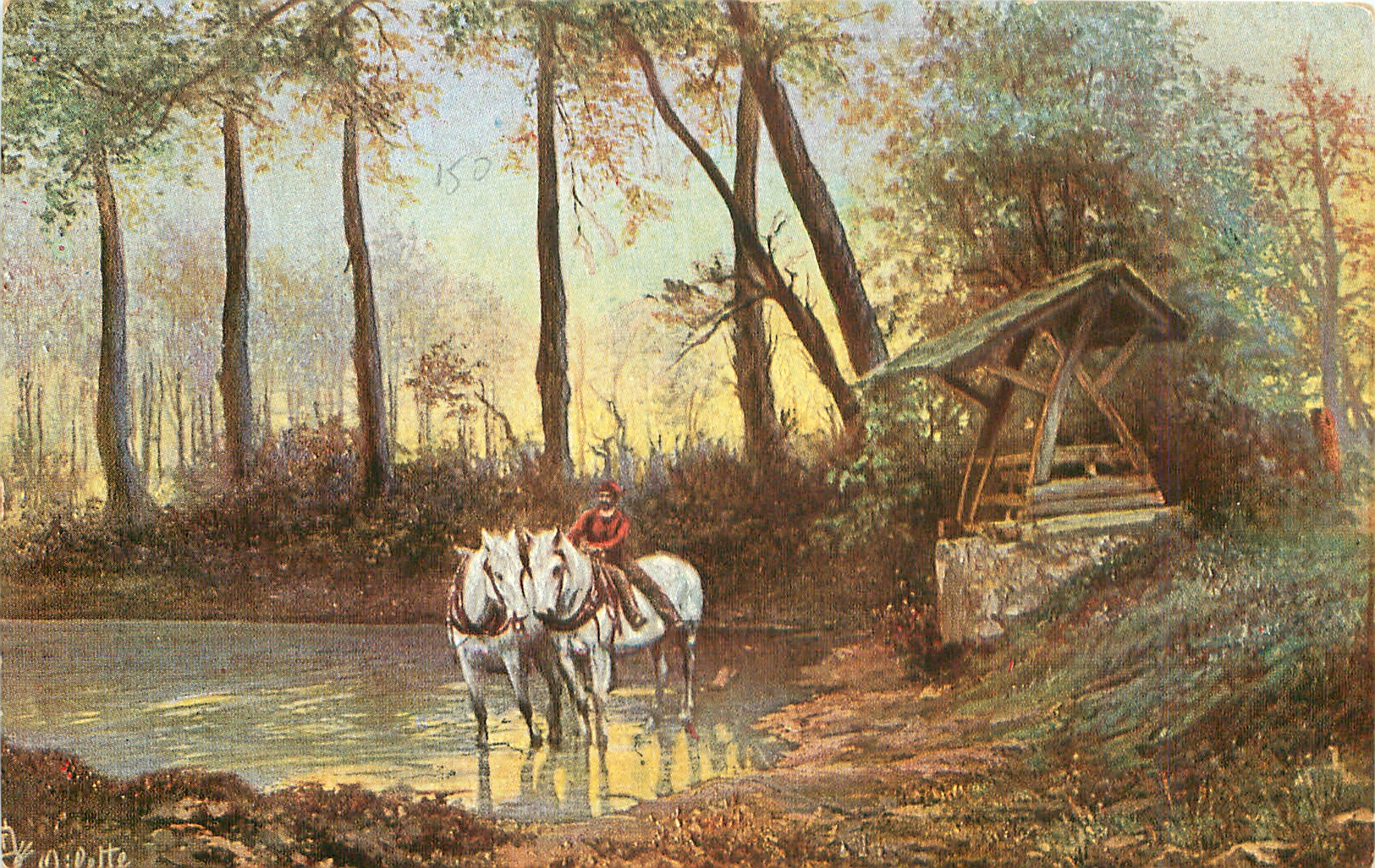 back description:- APRES LE DUR TRAVAIL DE LA CHARRUE, LE LABOUREUR CONDUIT CHEVAUX/LES REFRAICHIT