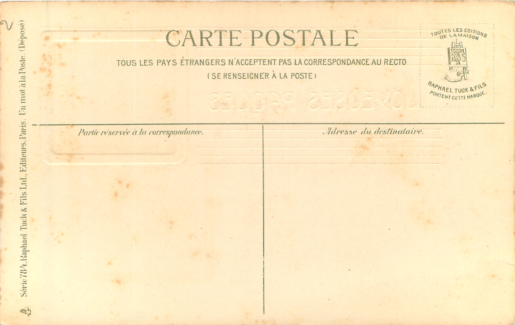 gilt embossed, UN MOT A LA POSTE, (DEPOSE) red card margins & red margined insets of poultry
