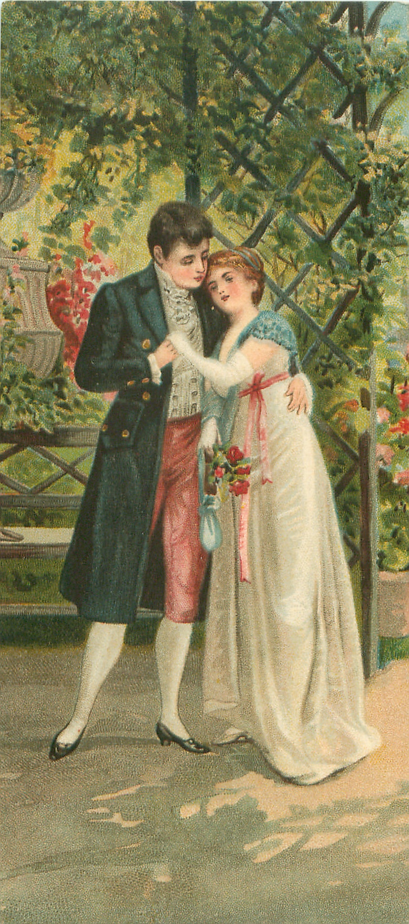 couples in elegant old-style dress on patio