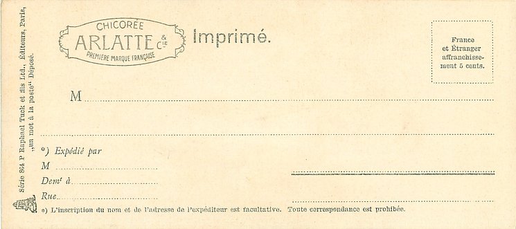 narrow, long cards, UN MOT A LA POSTE DEPOSE, suffix P, come CHICOREE ARLATTE