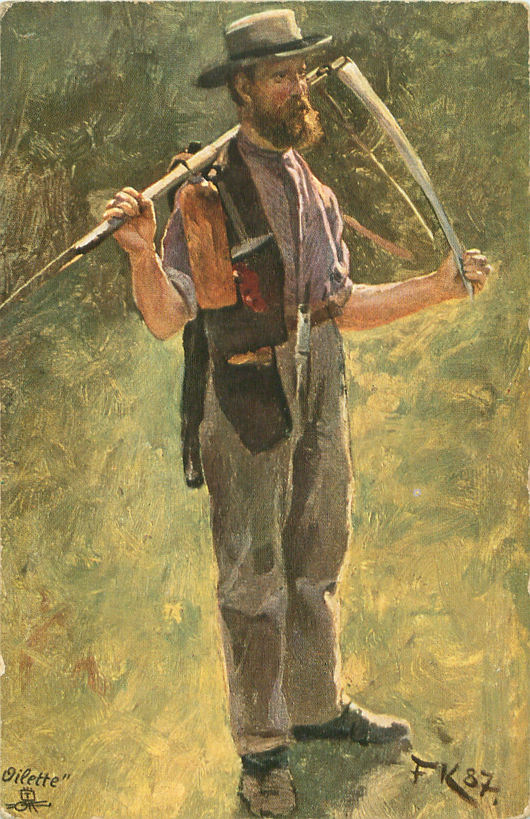 OILETTE, UN MOT A LA POSTE (DEPOSE), suffix P, same images German backs 1201 B KOLLEKTION "DEUTSCHER MEISTER" SERIE II, artist VON PROF. FR. KALLMORGEN on German backed cards