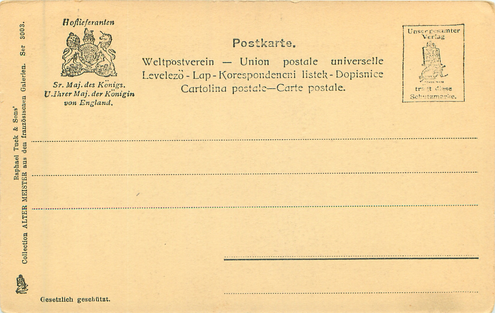 u/b, brown/purple, German/International backs, GESETZLICH GESCHUTZT, same images & numbers, French backs 3001 CHEFS D'OEUVRE DU MUSEE DU LOUVRE