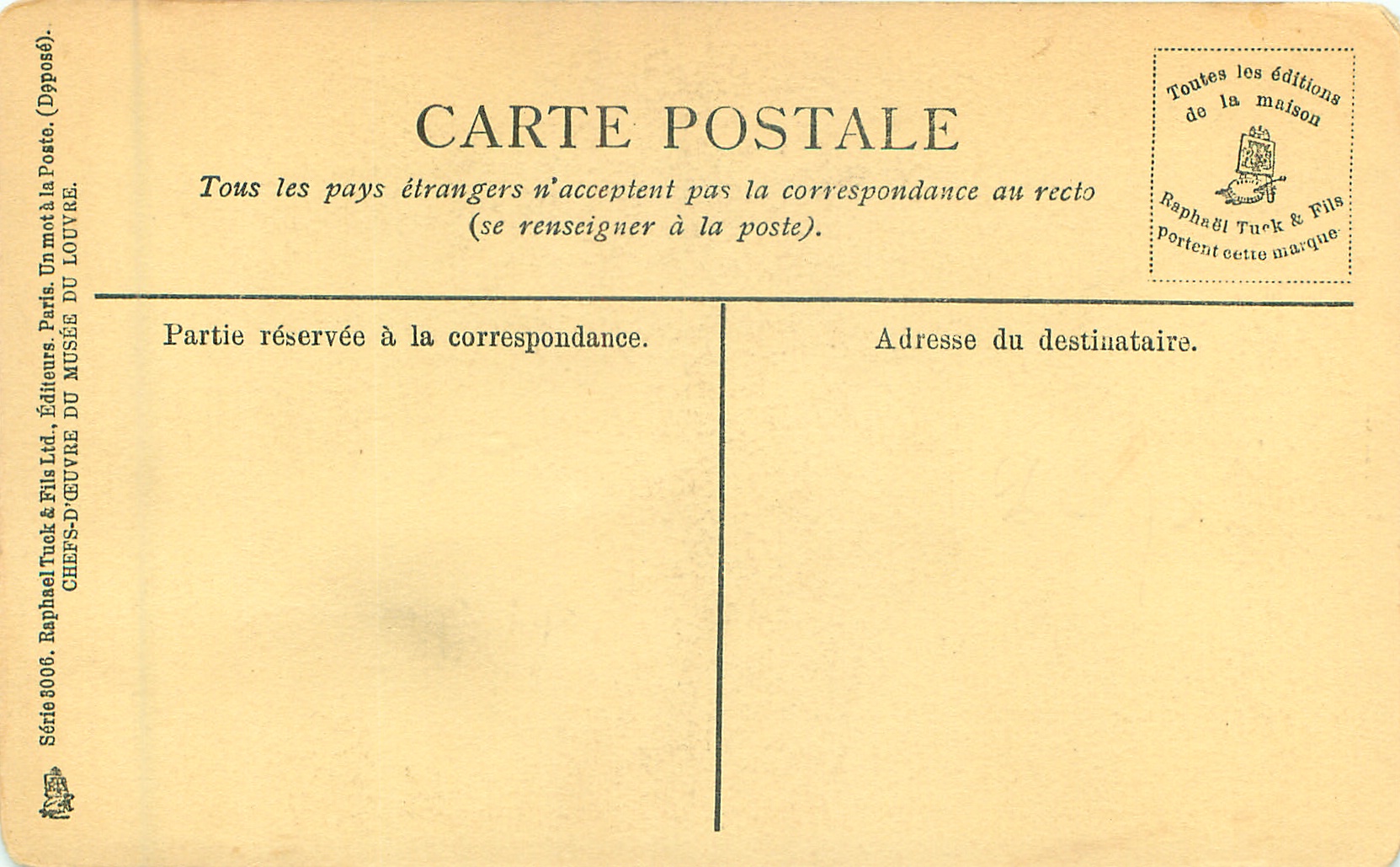 brown/purple,UN MOT A LA POSTE, (DEPOSE), same image & number, German/International back 3006 COLLECTION ALTER MEISTER AUS DEN FRANZOSISCHEN GALERIEN with inscription,front title & artist in French