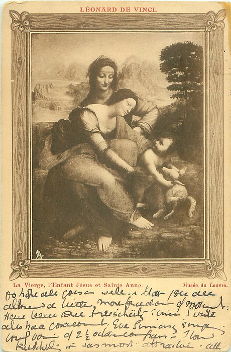 brown/purple,UN MOT A LA POSTE, (DEPOSE), same image & number, German/International back 3010 COLLECTION ALTER MEISTER AUS DEN FRANZOSISCHEN GALERIEN with inscription,front title & artist in French