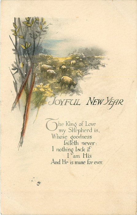verse: THE KING OF LOVE MY SHEPHERD IS, WHOSE GOODNESS FAILETH NEVER: I NOTHING LACK IF I AM HIS AND HE IS MINE FOREVER