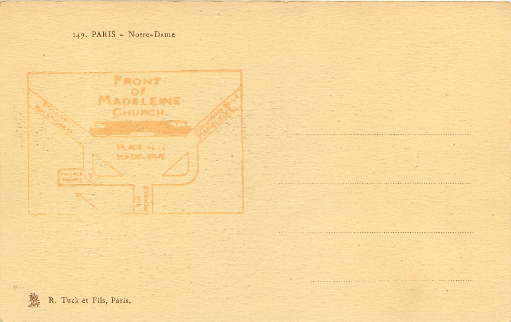 sepia, from photographs, similar to SIBYL sets but no attribution, map showing area FRONT OF MADELEINE CHURCH on back