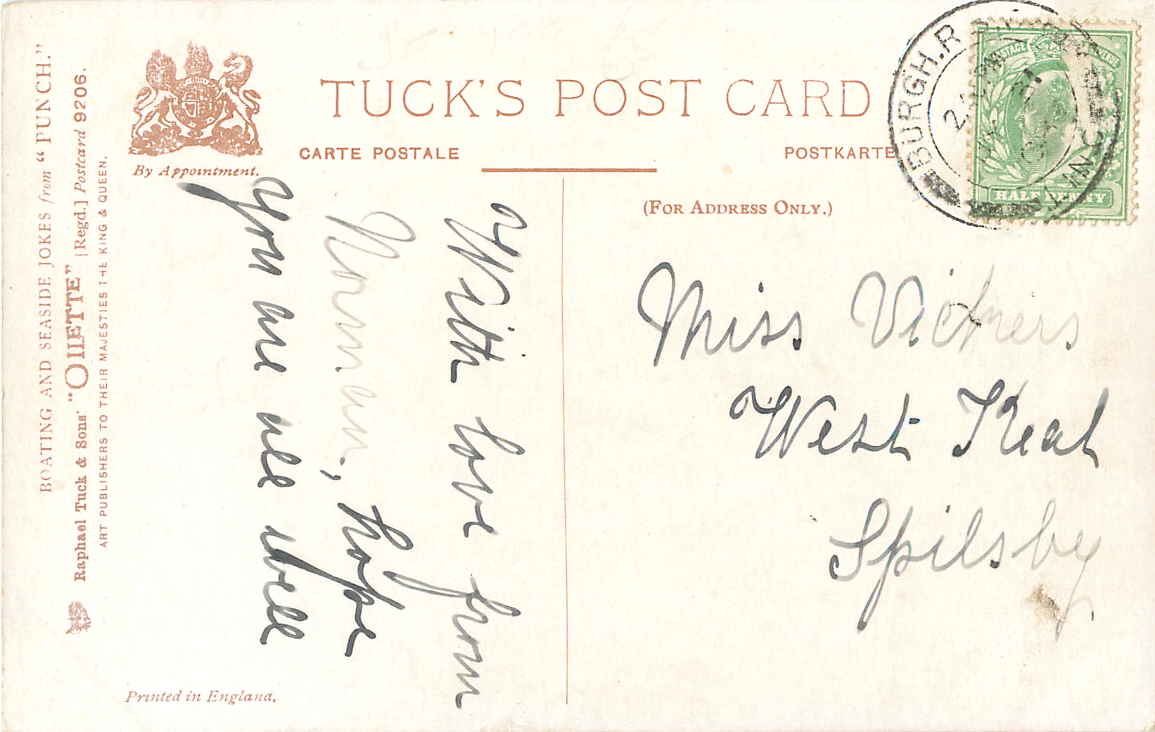 OILETTE, PRINTED IN ENGLAND, listed in 1908/1909 Catalogue