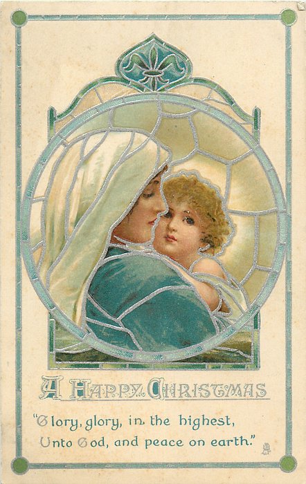 A HAPPY CHRISTMAS Madonna faces right & child on Marys lap faces front