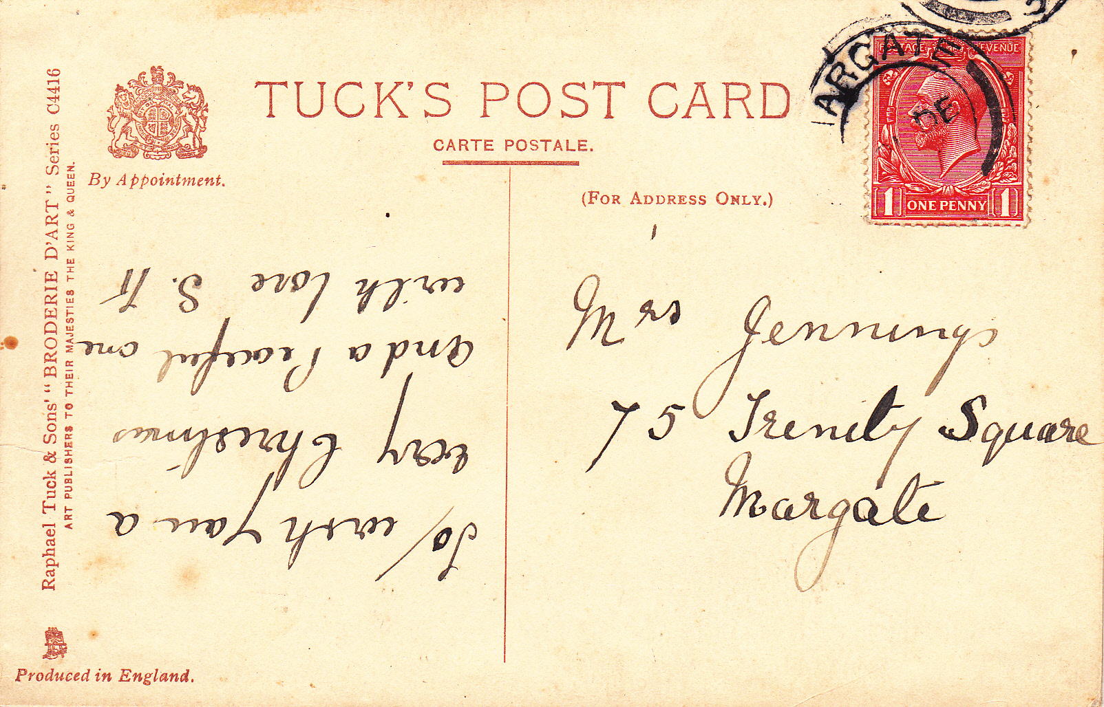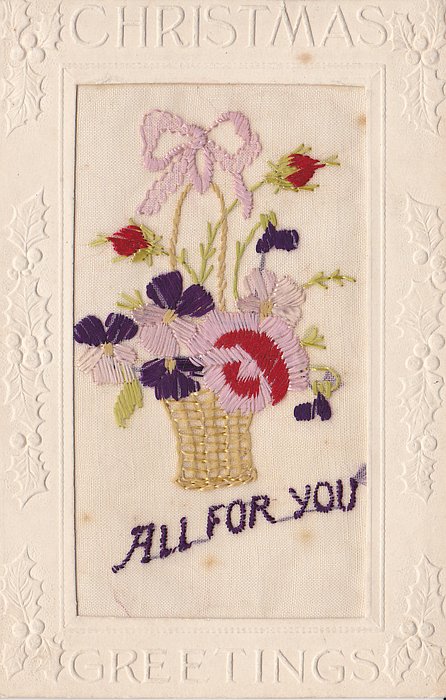 CHRISTMAS GREETINGS embroidered flowers in basket