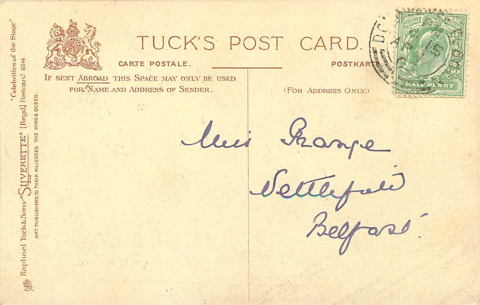 SILVERETTE, PHOTO BAVARIA (in stamp box), sepia, inscribed PHOTOBIOGRAPH (front)