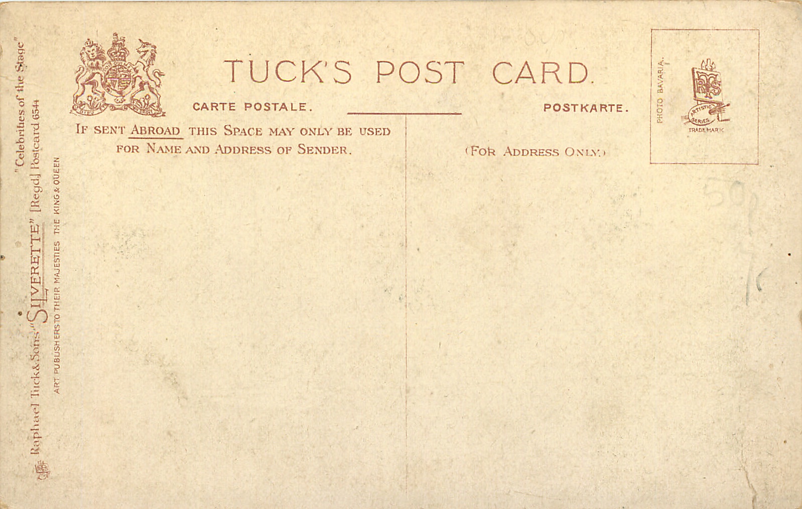 SILVERETTE, PHOTO BAVARIA (in stamp box), sepia, inscribed PHOTOBIOGRAPH (front)