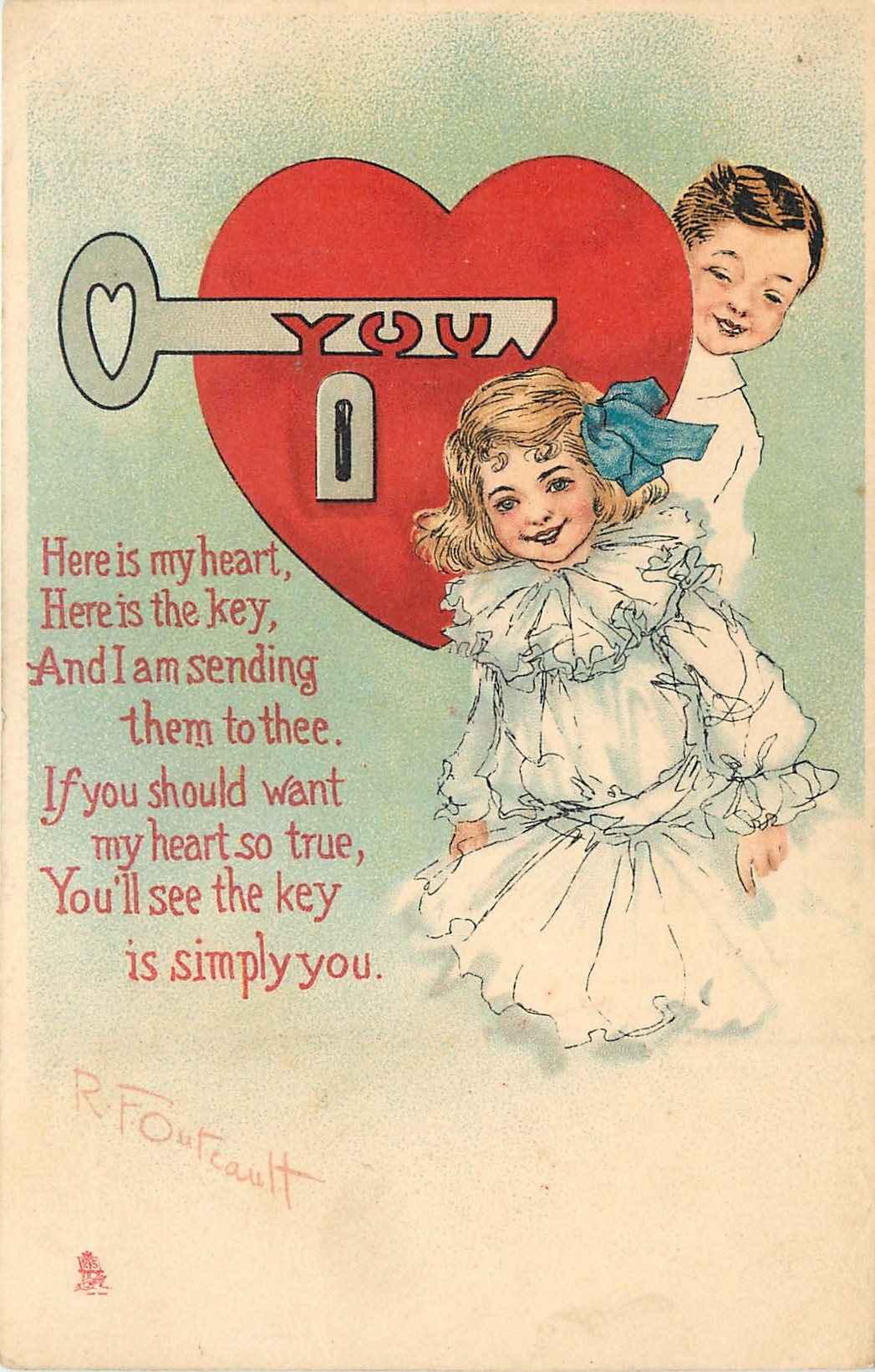 verse cont'd: HERRE IS THE KEY, AND I AM SENDING THEM TO THEE. IF YOU SHOULD WANT MY HEART SO TRUE, YOU'LL SEE THE KEY IS SIMPLY YOU