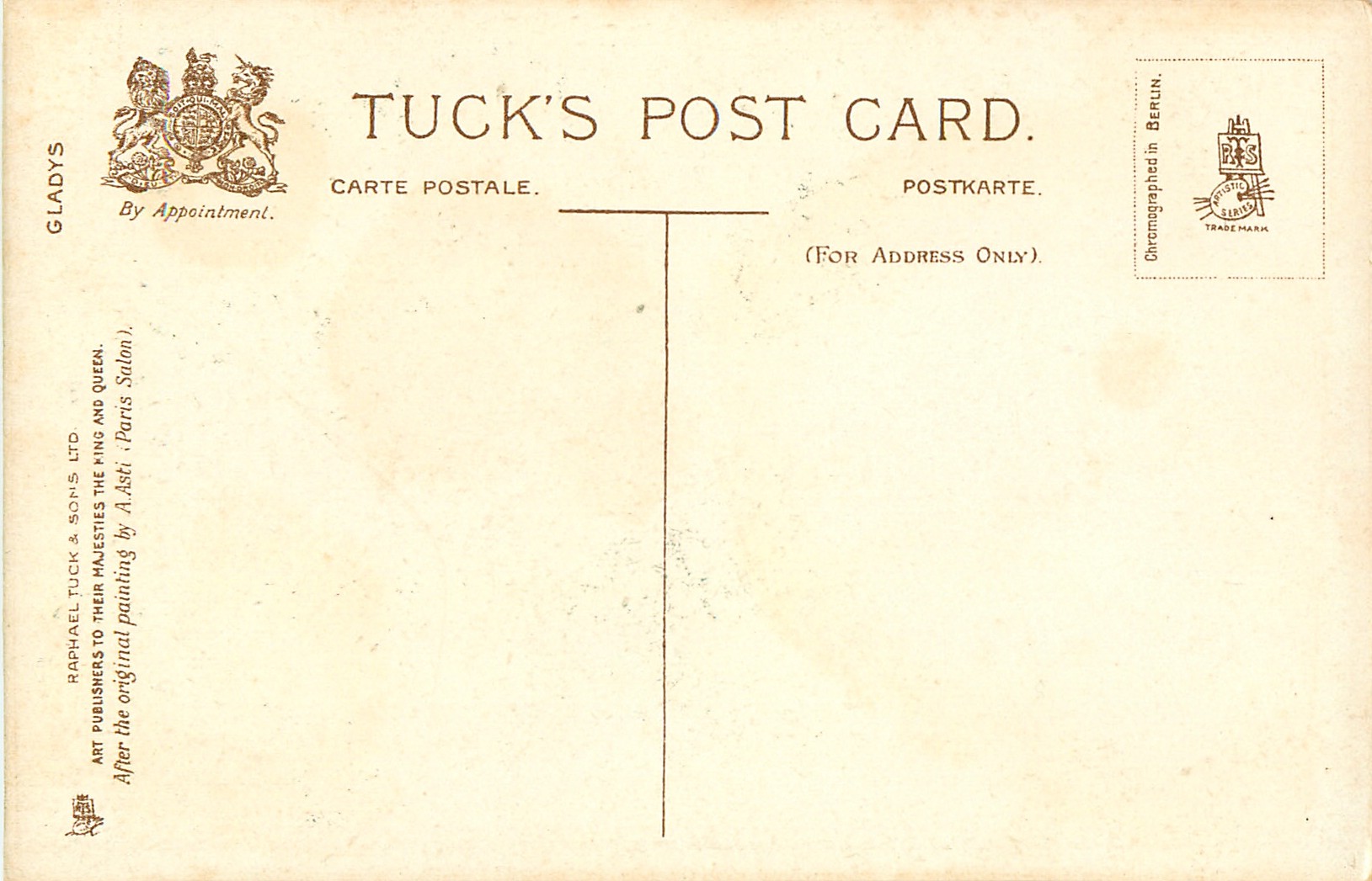 CHROMOGRAPHED IN BERLIN, AFTER THE ORIGINAL PAINTING BY A. ASTI (PARIS SALON)., these images were used widely by Tuck, see "artist"