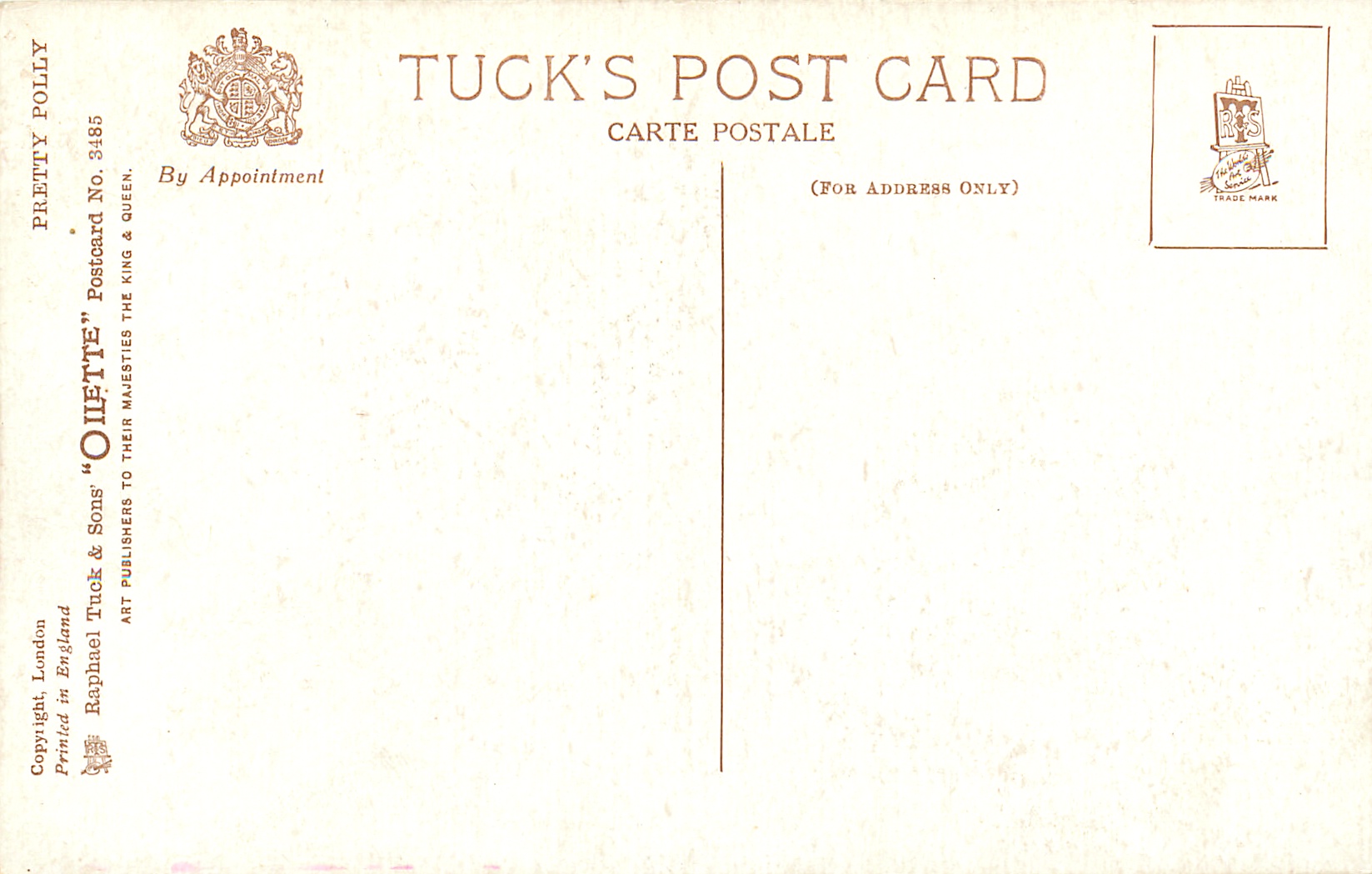 OILETTE, PRINTED IN ENGLAND, COPYRIGHT LONDON, listed in 1930 Postcard Catalogue