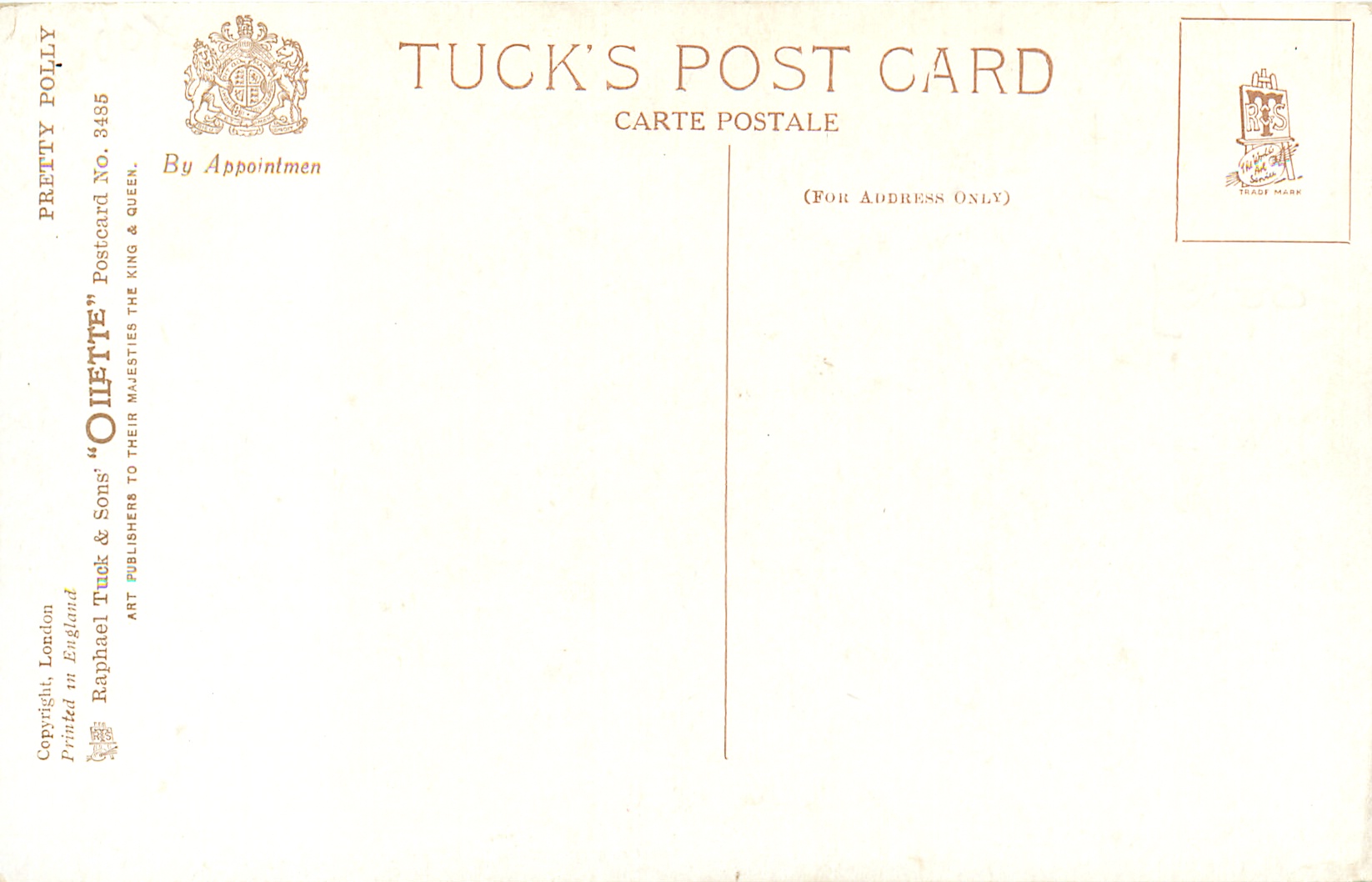 OILETTE, PRINTED IN ENGLAND, COPYRIGHT LONDON, listed in 1930 Postcard Catalogue