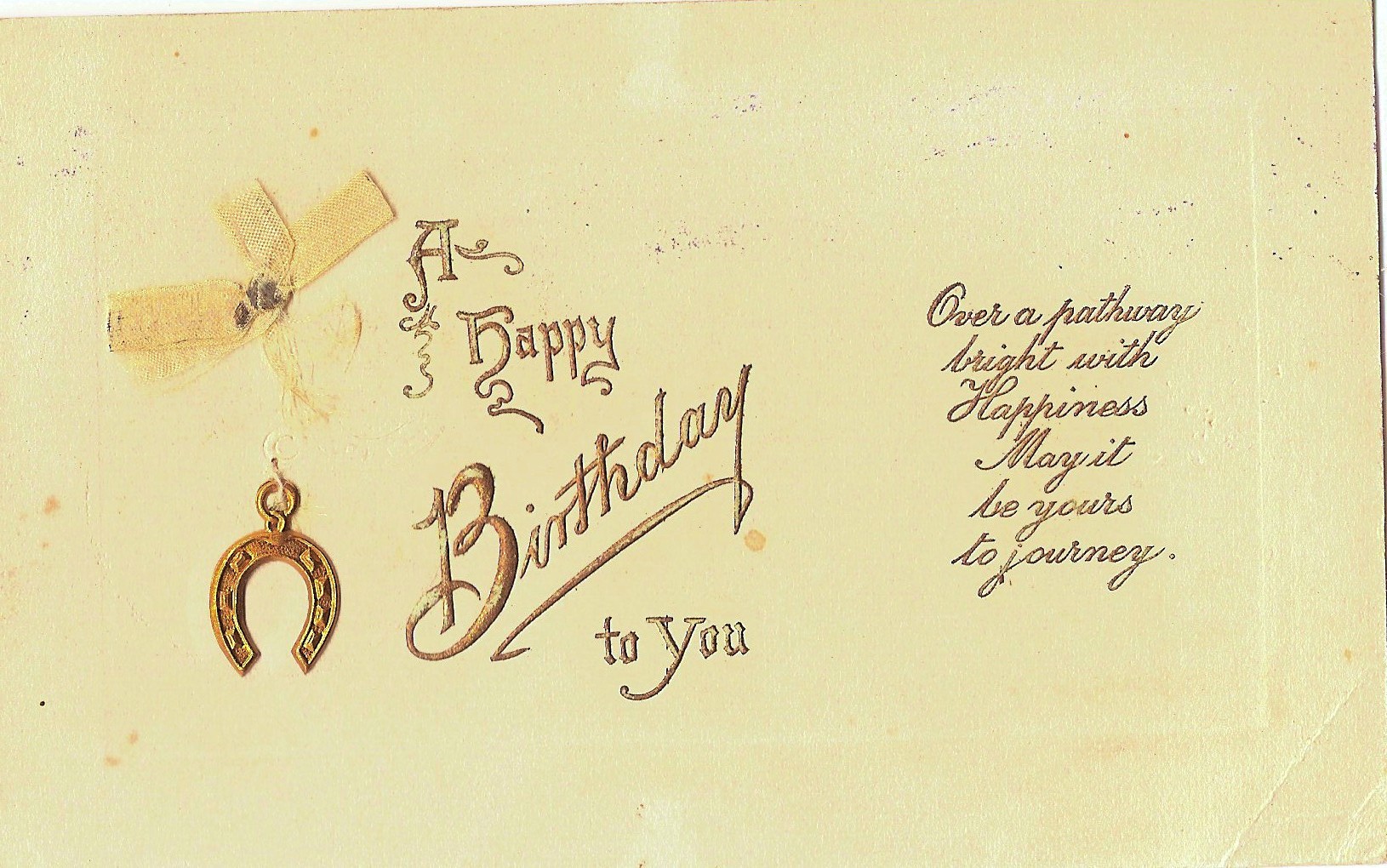 white ribbon & gilt horseshoe applique verse:- OVER A PATHWAY BRIGHT WITH HAPPINESS MAY IT BE YOURS TO JOURNEY