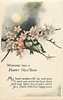 WISHING YOU A HAPPY NEW YEAR two birds on pink blossom tree