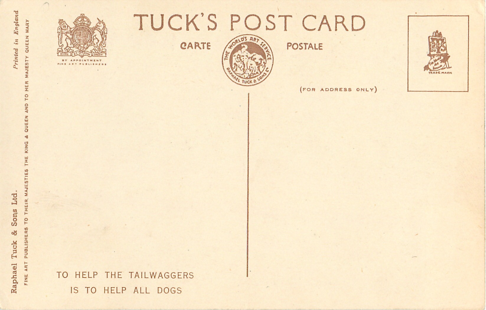 PRINTED IN ENGLAND, come with back inscription TO HELP THE TAILWAGGERS IS TO HELP ALL DOGS