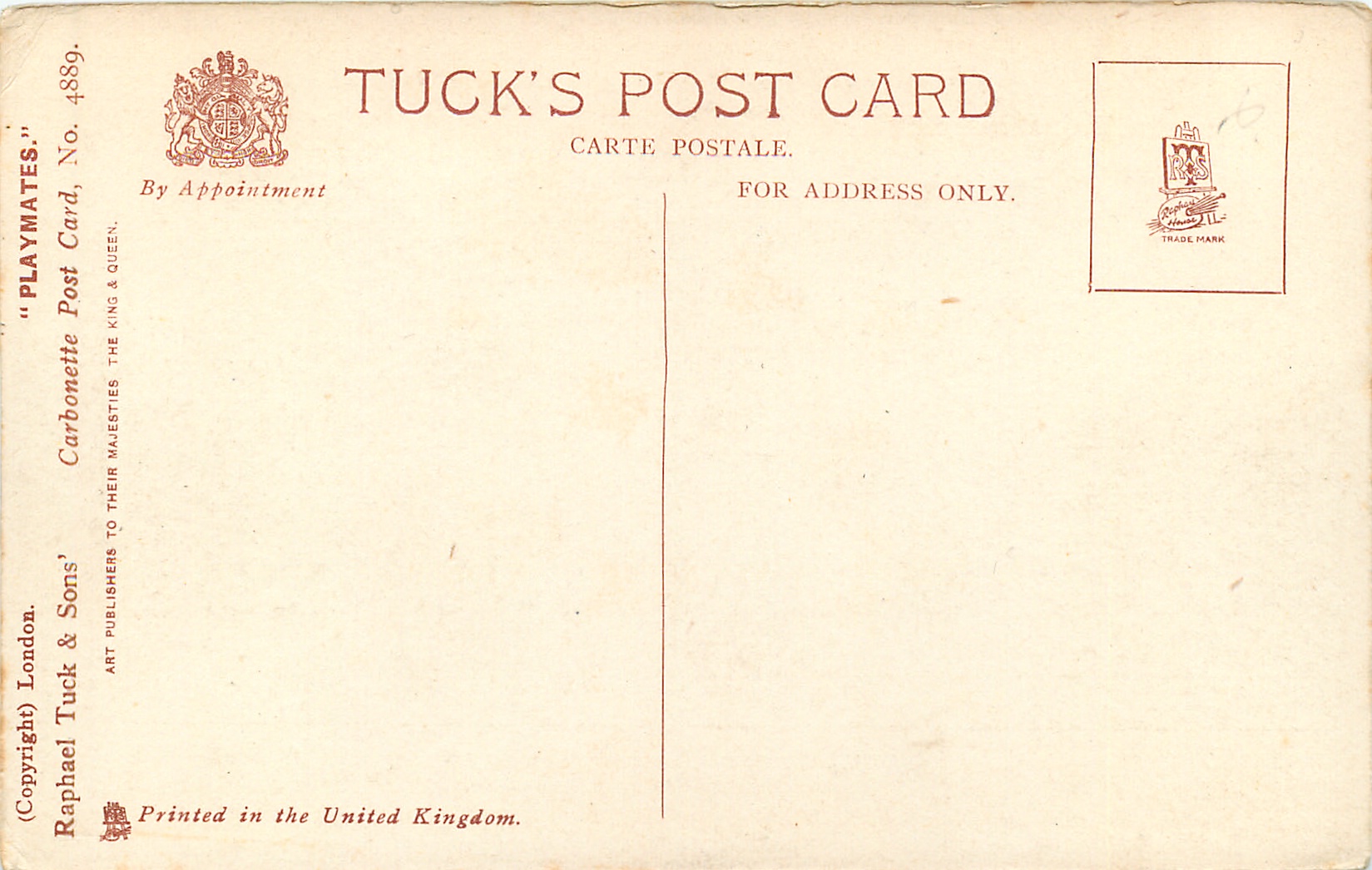 CARBONETTE, PRINTED IN THE UNITED KINGDOM (COPYRIGHT) LONDON, shades of grey, for same images HAND COLOURED CARBONETTE see 4839