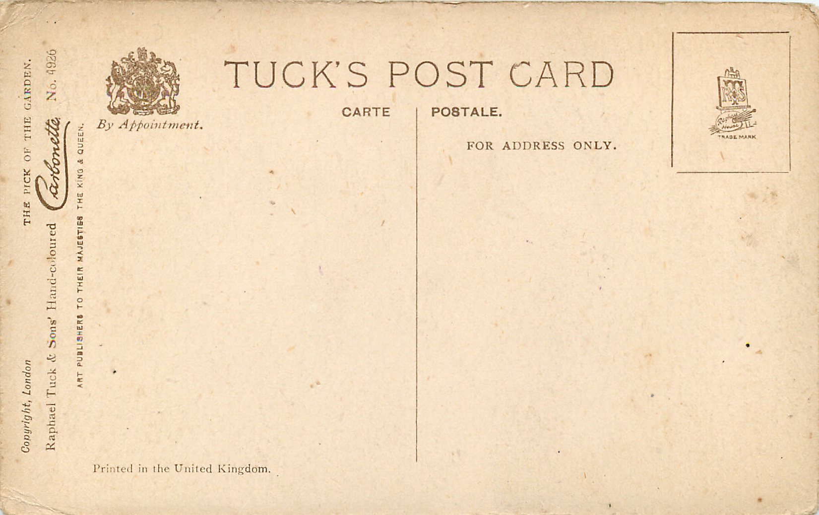 HAND COLOURED CARBONETTE, PRINTED IN THE UNITED KINGDOM, COPYRIGHT LONDON, same images CARNONETTE 4956