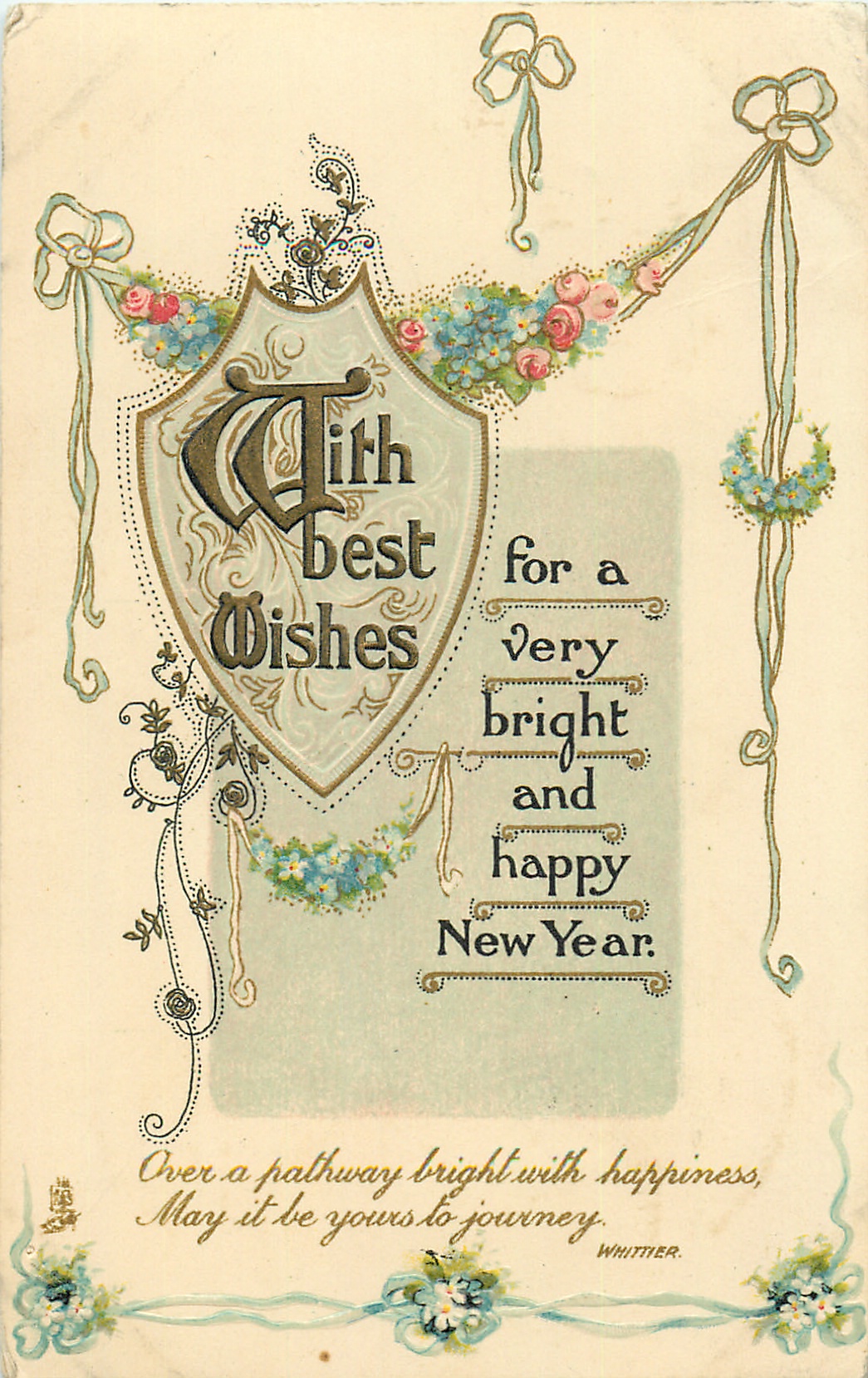 verse:- OVER A PATHWAY BRIGHT WITH HAPPINESS, MAY IT BE YOURS TO JOURNEY. quote WHITTIER
