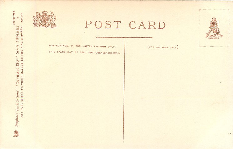 grey/black, come hand-coloured, card titles in black in white lower margin, TOWN AND CITY, PHOTOTYPED IN HOLLAND, same images in LONDON TOWN & CITY 2001 and some in LONDON VIEW 2001