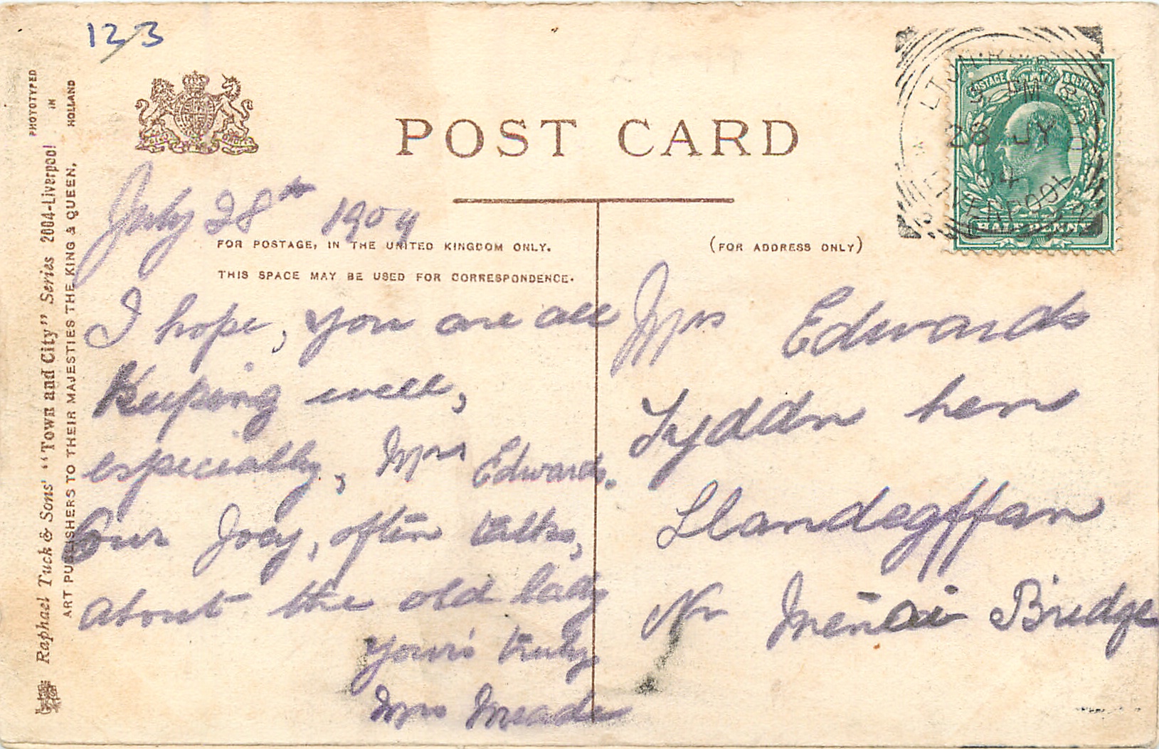 grey/black, TOWN AND CITY, PHOTOTYPED IN HOLLAND, 2 backs, come with & w/o white lower margin, listed in 1904 POSTCARD Catalogue