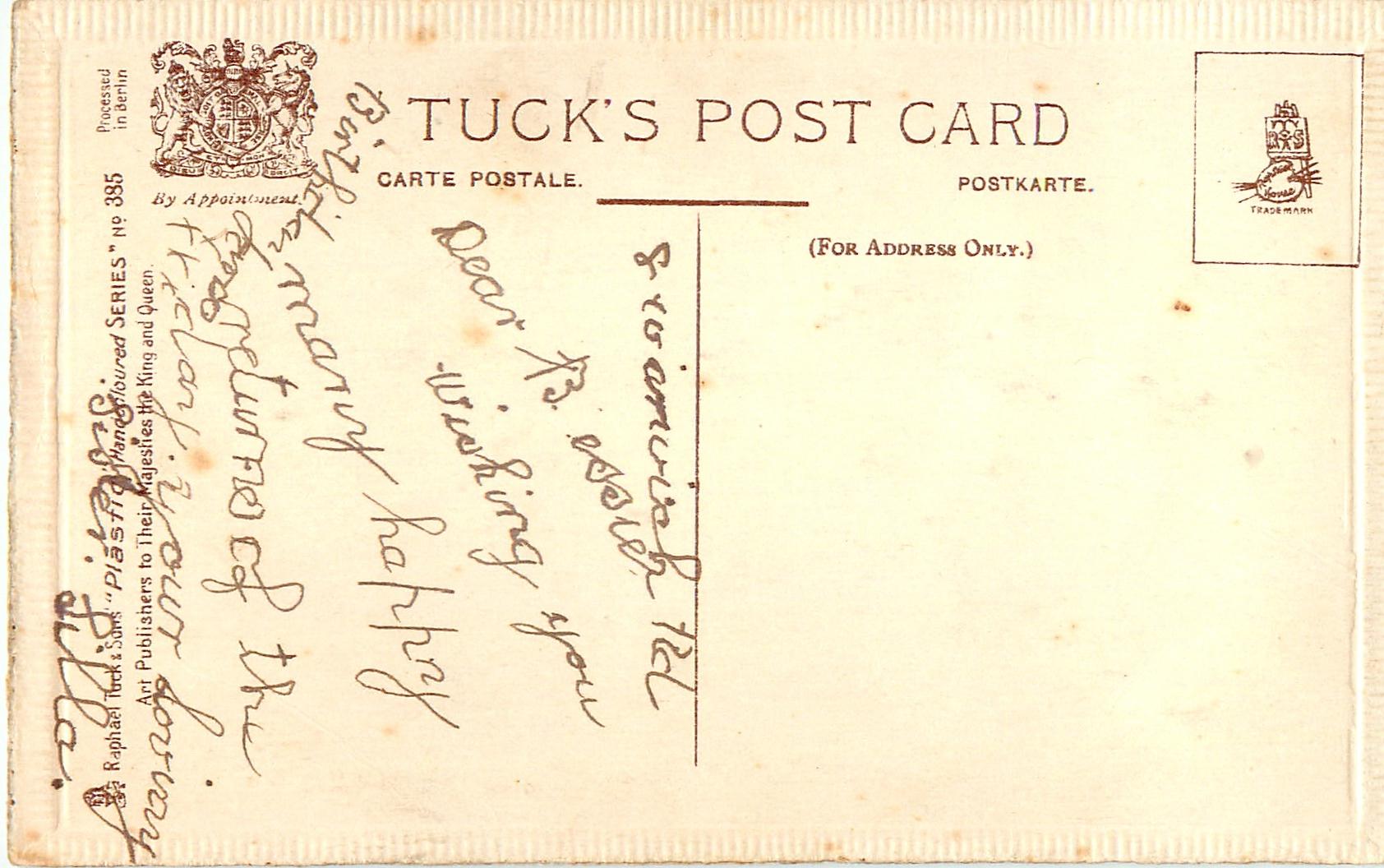 PLASTIC HANDCOLOURED, PROCESSED IN BERLIN, very heavy embossing on front, gilt greeting