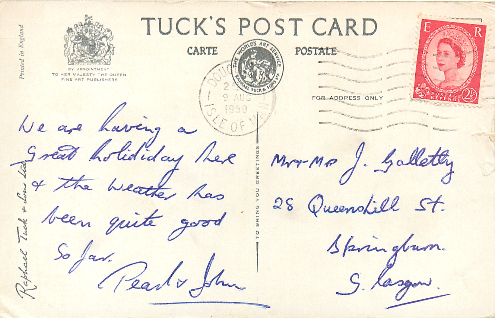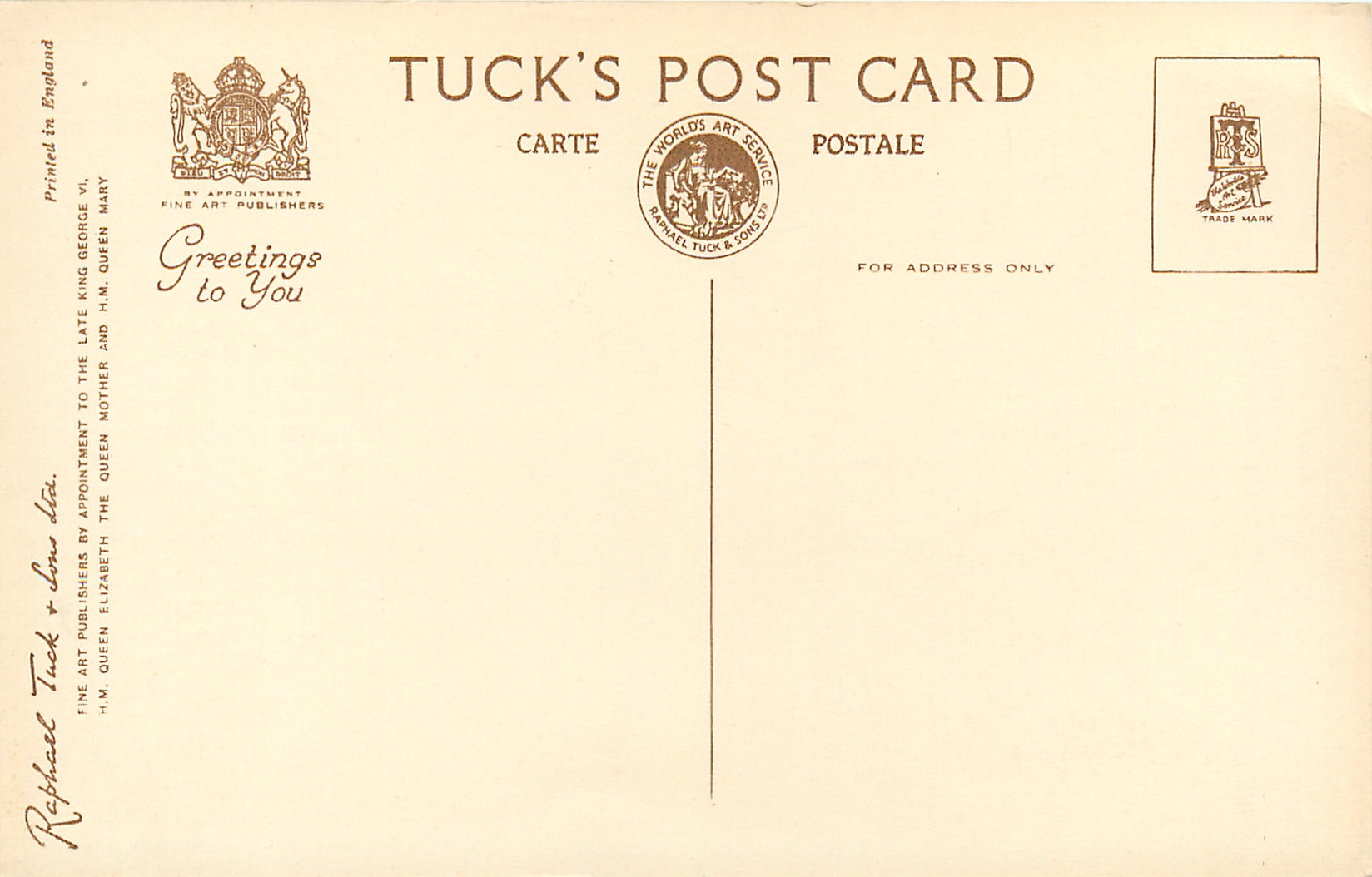 sepia, PRINTED IN ENGLAND, come with GREETINGS TO YOU or TO BRING YOU GREETINGS on back