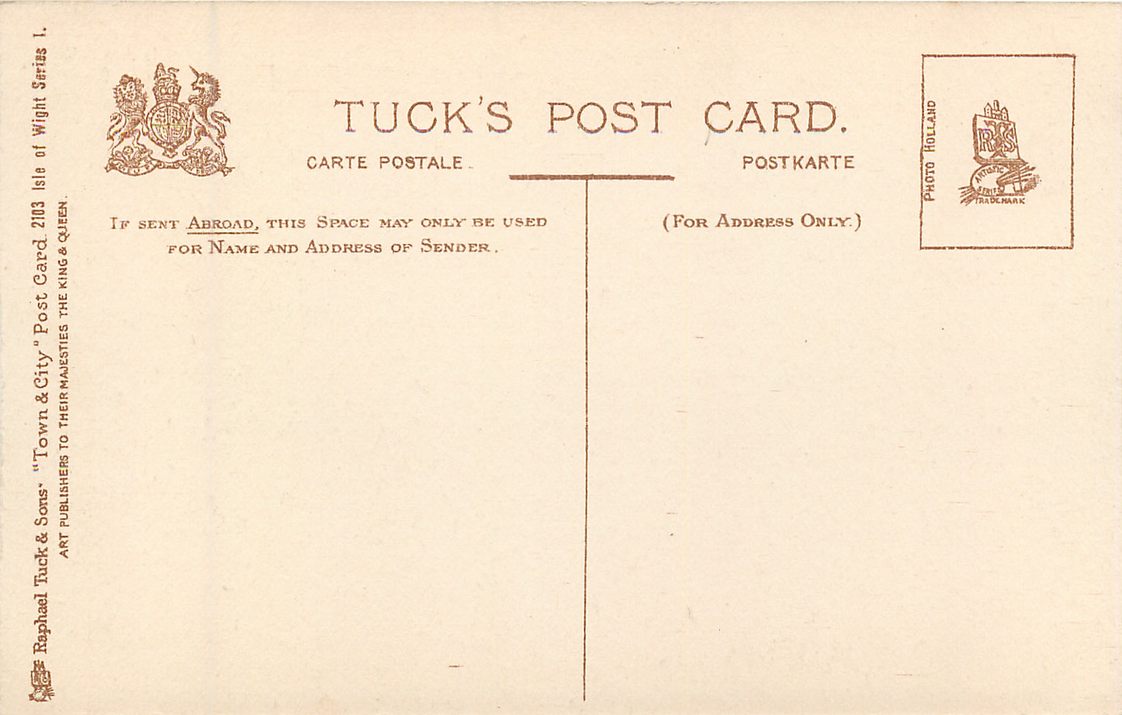 grey/black, TOWN & CITY, PHOTO HOLLAND (in stamp box), same images as ISLE OF WIGHT TOWN AND CITY SERIES 1, listed in RAPHAEL TUCK & SONS' LD. CHRISTMAS & NEW YEAR 1904/1905 catalogue