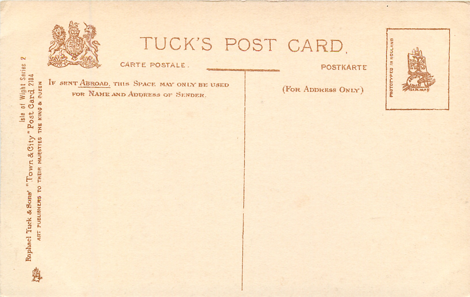 grey/black, TOWN & CITY, PHOTOTYPED IN HOLLAND (in stamp box), same images as ISLE OF WIGHT TOWN AND CITY SERIES 2, listed in RAPHAEL TUCK & SONS' LD. CHRISTMAS & NEW YEAR 1904/1905 catalogue