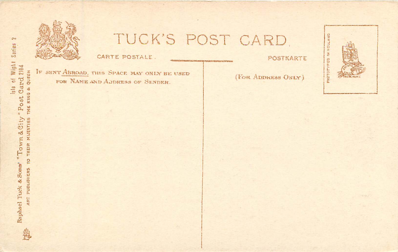 grey/black, TOWN & CITY, PHOTOTYPED IN HOLLAND (in stamp box), same images as ISLE OF WIGHT TOWN AND CITY SERIES 2, listed in RAPHAEL TUCK & SONS' LD. CHRISTMAS & NEW YEAR 1904/1905 catalogue