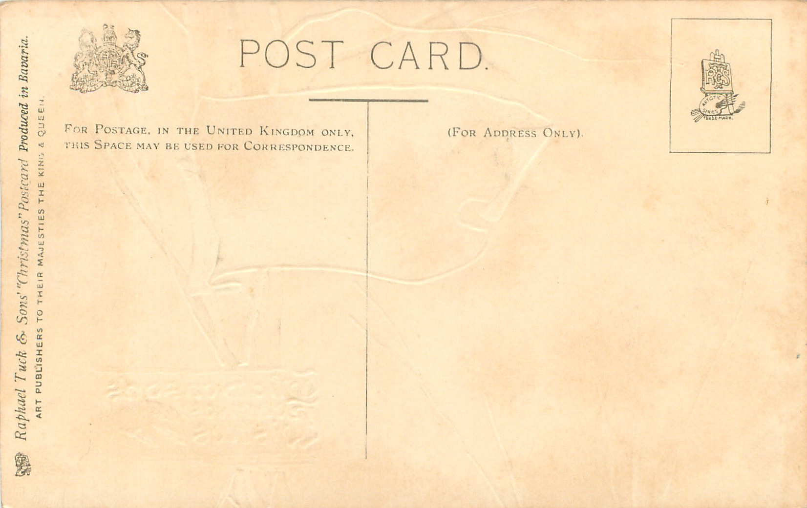 PRODUCED IN BAVARIA, embossed greetings in gilt or silver, same images occur with red or cream background, illuminated letters on most cards