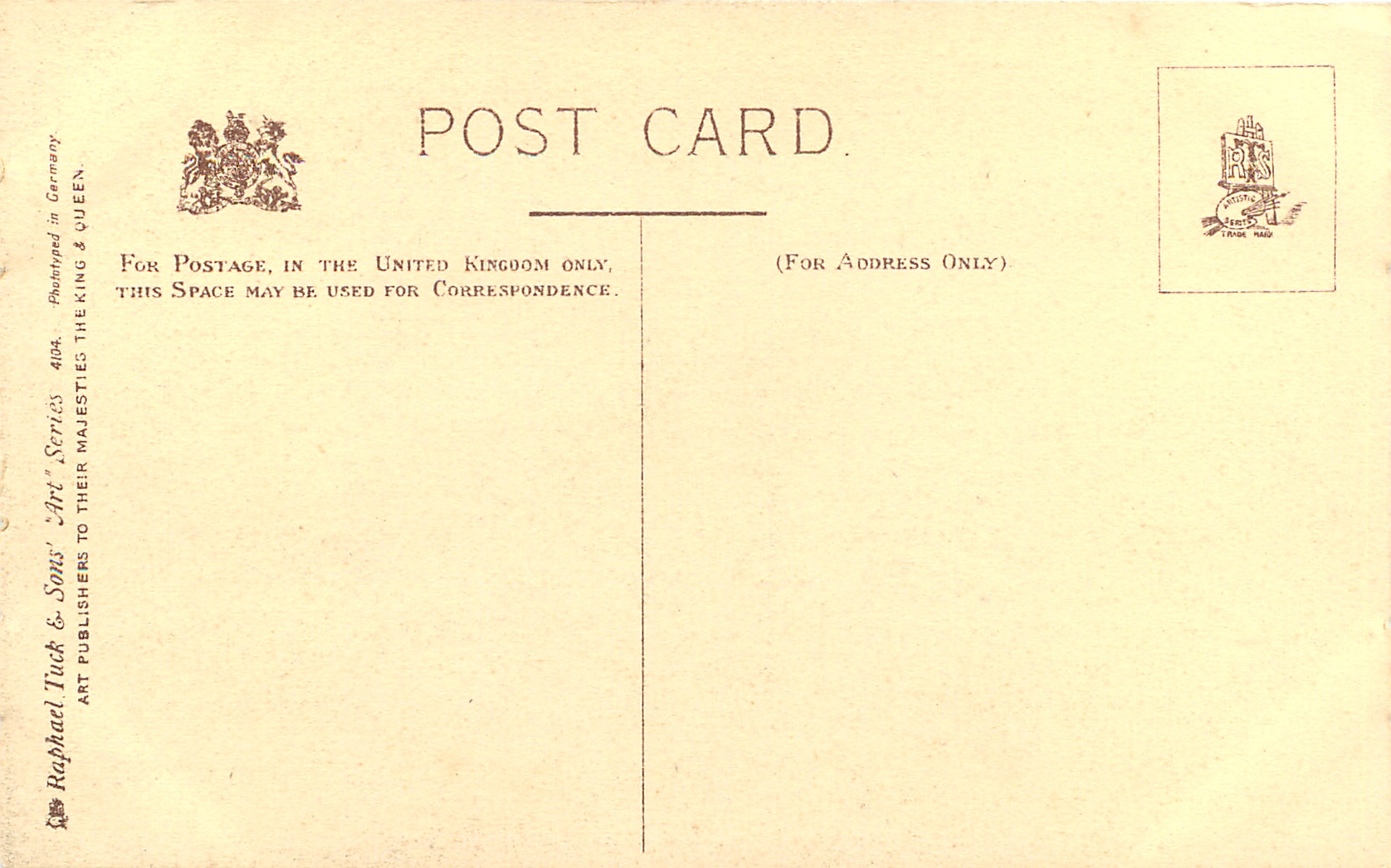 ART, PHOTOTYPED IN GERMANY, listed in 1904 POSTCARD Catalogue