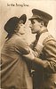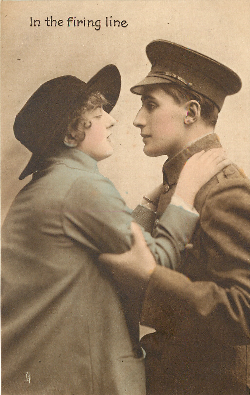 IN THE FIRING LINE solider and woman embracing, solider right, woman left, woman has hands on solider's shoulders, solider his right hand on her arm