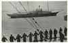 back information:- VIEW TAKEN FROM H.M.S. "LONDON," SHOWING THE KING'S YACHT, "VICTORIA AND ALBERT." PASSING BETWEEN THE LINES OF BATTLESHIPS AT THE JUBILEE NAVAL REVIEW.