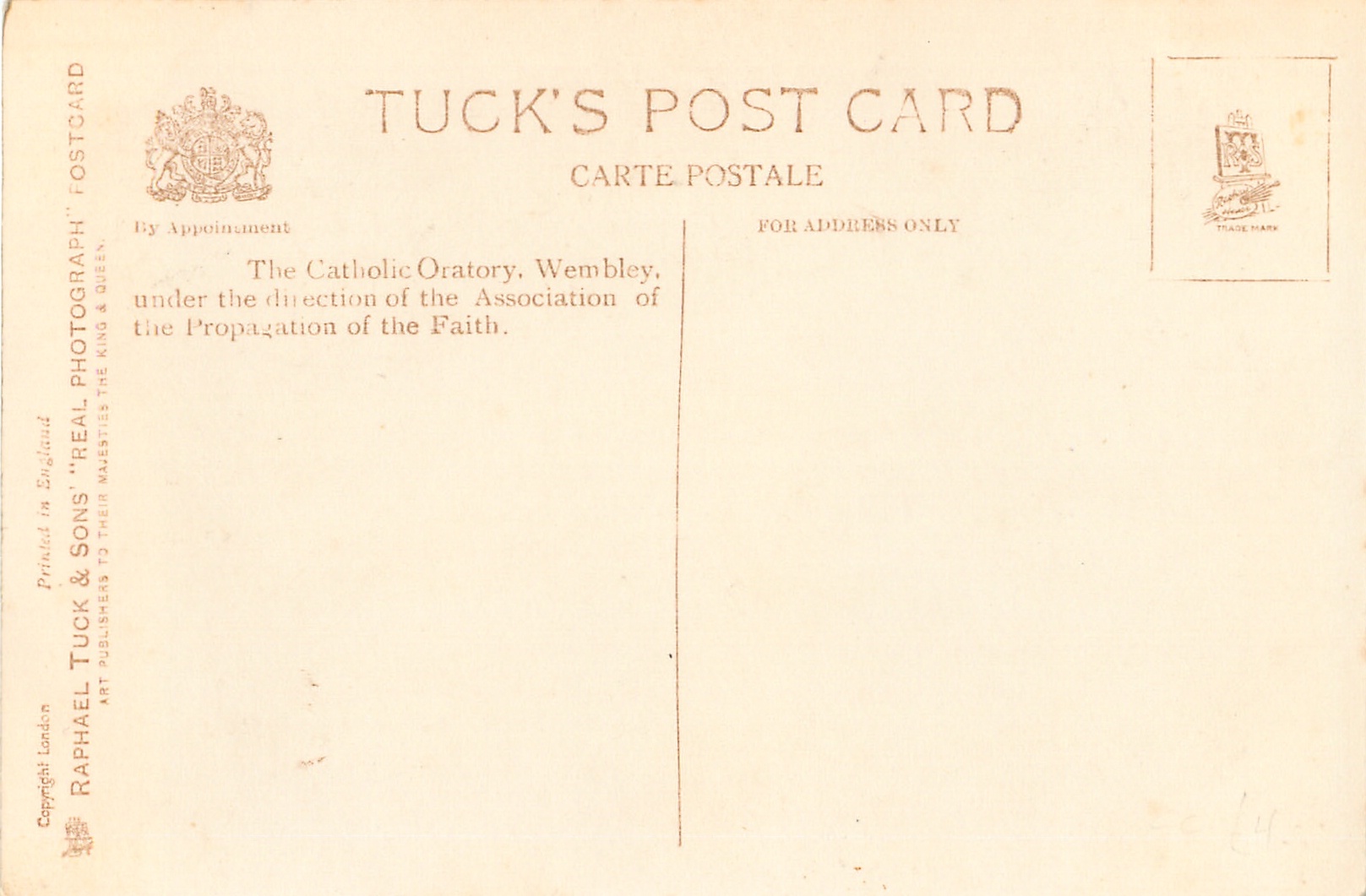 REAL PHOTOGRAPH, PRINTED IN ENGLAND, COPYRIGHT LONDON back:- THE CATHOLIC ORATORY, WEMBLEY, UNDER THE DIRECTION OF THE ASSOCIATION OF THE PROPAGATION OF THE FAITH