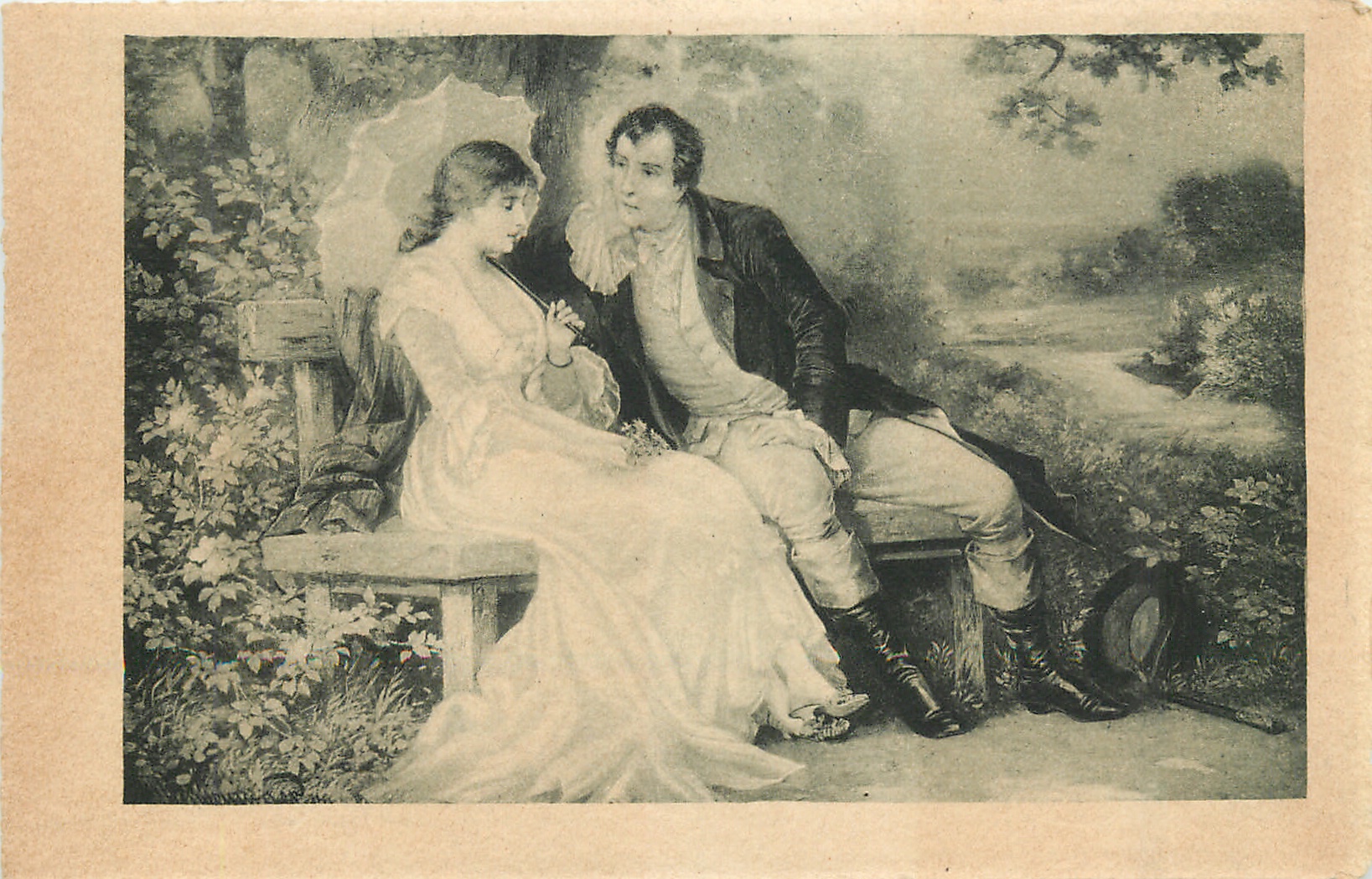 u/b, black & white, UN MOT A LA POSTE, (DEPOSE), same images 2551, Lovers in old-style dress, deckle edged