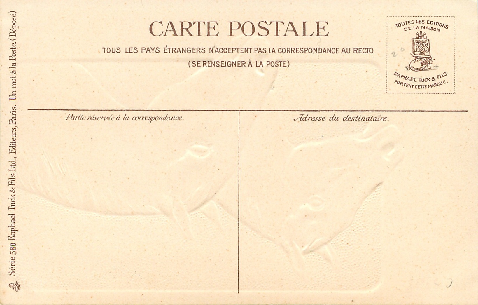 embossed, UN MOT A LA POSTE, (DEPOSE), horseshoes on green background as surround